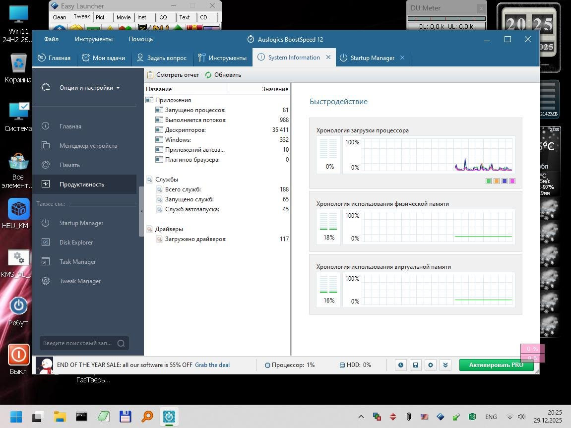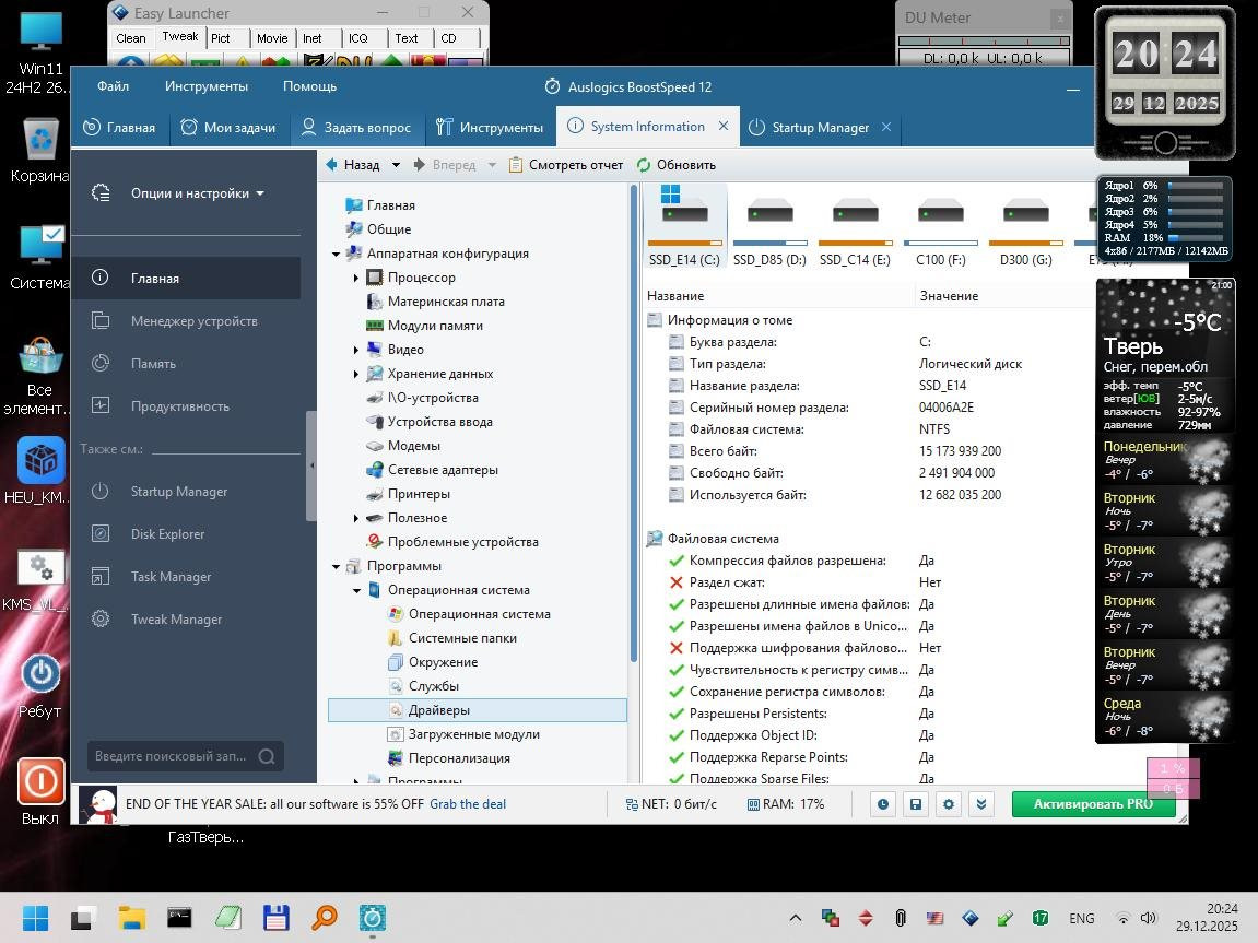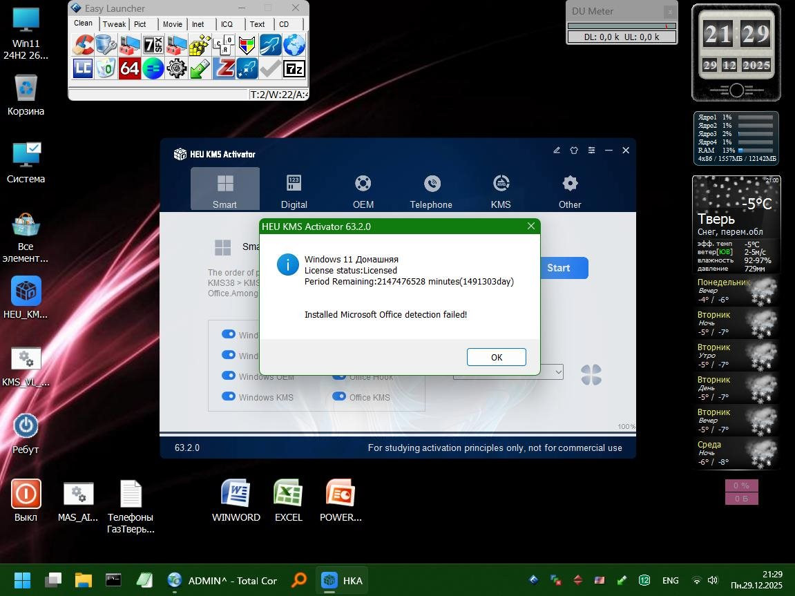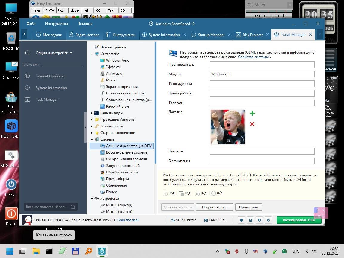 Windows 11 24H2 [26100.3775] - 1GB В процессе настройки обнаружился один баг - система внезапно заморгала и заверещала о "переполнении стека", виной которого является Shellhost.exe. Загрузкой в PE нашел и занулил (через Unlocker'a добавил 0 к расширению) этот модуль и все заморочки закончились, система заработала стабильно и шустро. А вот вернуть вид индикатора громкости к семерочному вертикальному виду так и не получилось, увы, как ни старался. AeroTweaker с этим не справился.