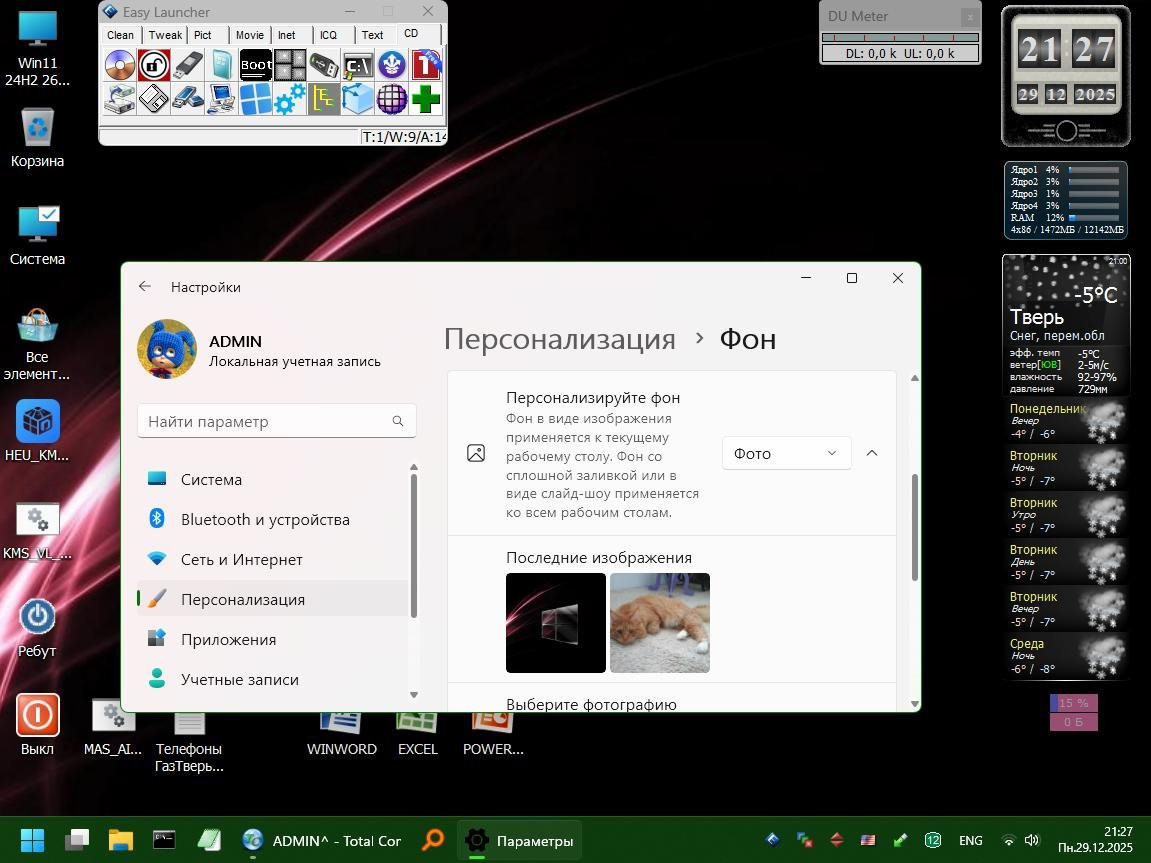 Сегодня Мастер отписался ... По поводу заливок, то последняя Десятка будет точно, а вот 24H2 и 25H2, там нужно смотреть, 25H2 когда выйдет релиз, а 24H2 смотреть что они там нового наворотили. Вопрос в том, что там особо ничего нового нет, точнее оно там есть, но в заливках этот функционал урезается, за ненадобностью и получается, что ничего и нет, меняется только цифра при том же функционале. Так что ... Ждем - Верим - Надеемся